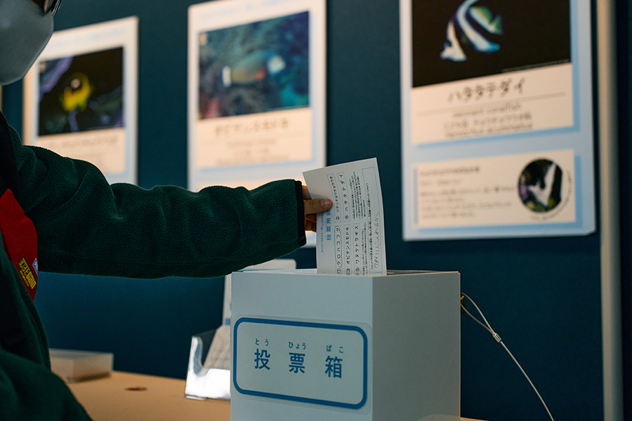 今回は、新しい水族園をもっと楽しみにしてもらうことを目的に、こどもたちや来園者の皆さんの「こんな魚が見たい!」という声を集める投票イベントを実施しました。投票で1位に選ばれた魚は、新しい水族園の「小笠原諸島」をテーマとする水槽で展示する予定です。